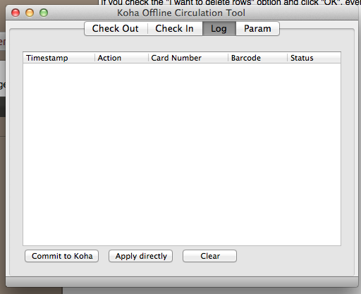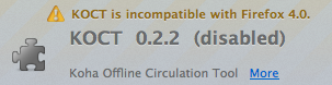 I'm trying to test this and failing because I don't understand how the offline circ addon communicates with Koha. The wiki page (http://wiki.koha-community.org/wiki/Offline_circulation_firefox_plugin) shows screenshots of the KOCT which don't match the current plugin: The current plugin offers two buttons under the log tab, "Commit to Koha" and "Apply directly." Clicking either one of these doesn't appear to do anything. The wiki page also shows a screenshot of a page in Koha which doesn't appear to exist in master. The "Process Pending Offline Operations" page doesn't exist as far as I can tell. I'm guessing this is in a Biblibre branch? Is this why the KOCT doesn't do anything?
