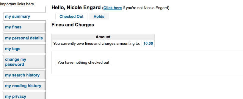 Created attachment 3866 [details] what it looks like I'm on Mac, FF4 and the details tab doesn't have the usual three tabs (checked out, overdues, fines)