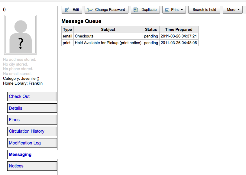 Created attachment 3873 [details] other missing info on the notices tab the name reappears, but the patron number and contact info isn't there.
