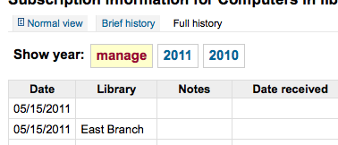Created attachment 3929 [details] manage tab There is a new tab in the opac on the subscription page that says 'manage' this just shows you the current year, so what's the point of it? Is it supposed to be there? This is confusing to patrons.