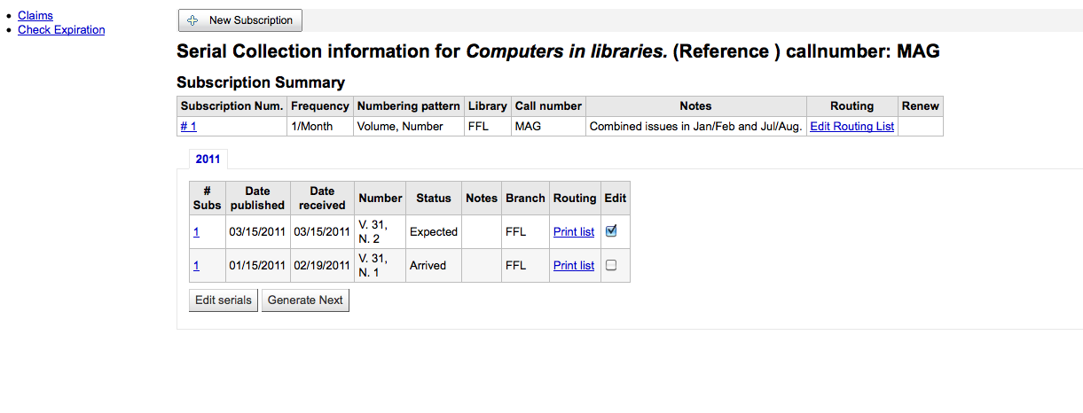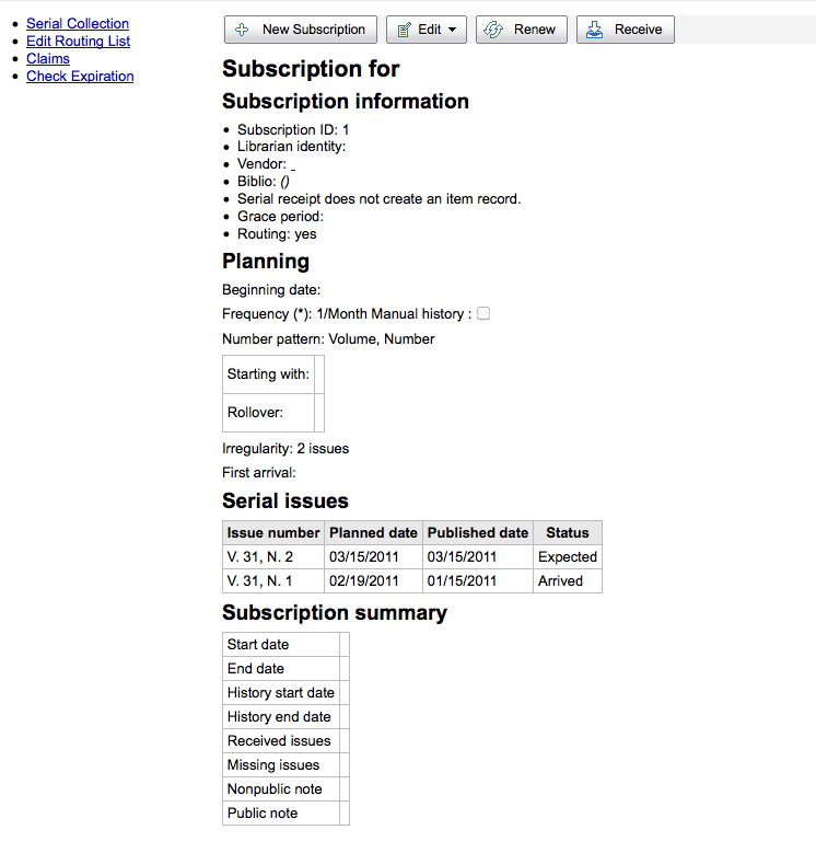 Created attachment 3944 [details] no info When I view a subscription no data shows - but if i click the 'serial collection' link I get all the info.