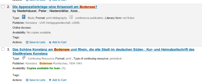 Created attachment 3954 [details] screenshot In OPAC's result list with XSLT on and Tagging on result list deactivated you alwas see the Tags: label. This problem remains when switching back to normal view for OPAC results. Another problem is Online resources: not showing the link, although it's shown correctly in the detail view.