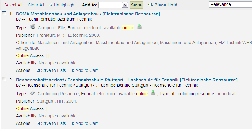 Created attachment 3966 [details] screenshot of result list - links missing!
