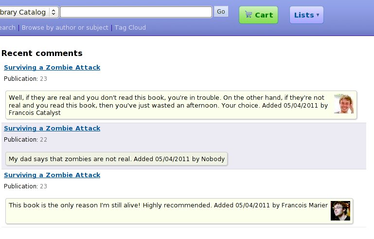Nicole, I quickly looked around but I couldn't find that recent comments page. Is it in the OPAC or on the admin side?
