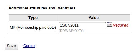 Created attachment 4111 [details] Screenshot of the desired functionality ExtendedPatronAttributes fields presently allow for Repeatable, Searchable, Unique ID, text type input box as well as auth_val driven select lists. It would be nice to have a date picker calendar pop-up facility and ValidateDate() function for the field as its parameters Possibly lib/C4/Members/AttributeTypes.pm, intranet/cgi-bin/admin/patron-attr-types.pl, intranet/htdocs/intranet-tmpl/prog/en/modules/admin/patron-attr-types.tmpl would require some functional changes I've attached a screenshot of the feature. Right now I'm doing it with an ugly jquery hack via intranetuserjs (http://pastebin.com/BPQw43tY)