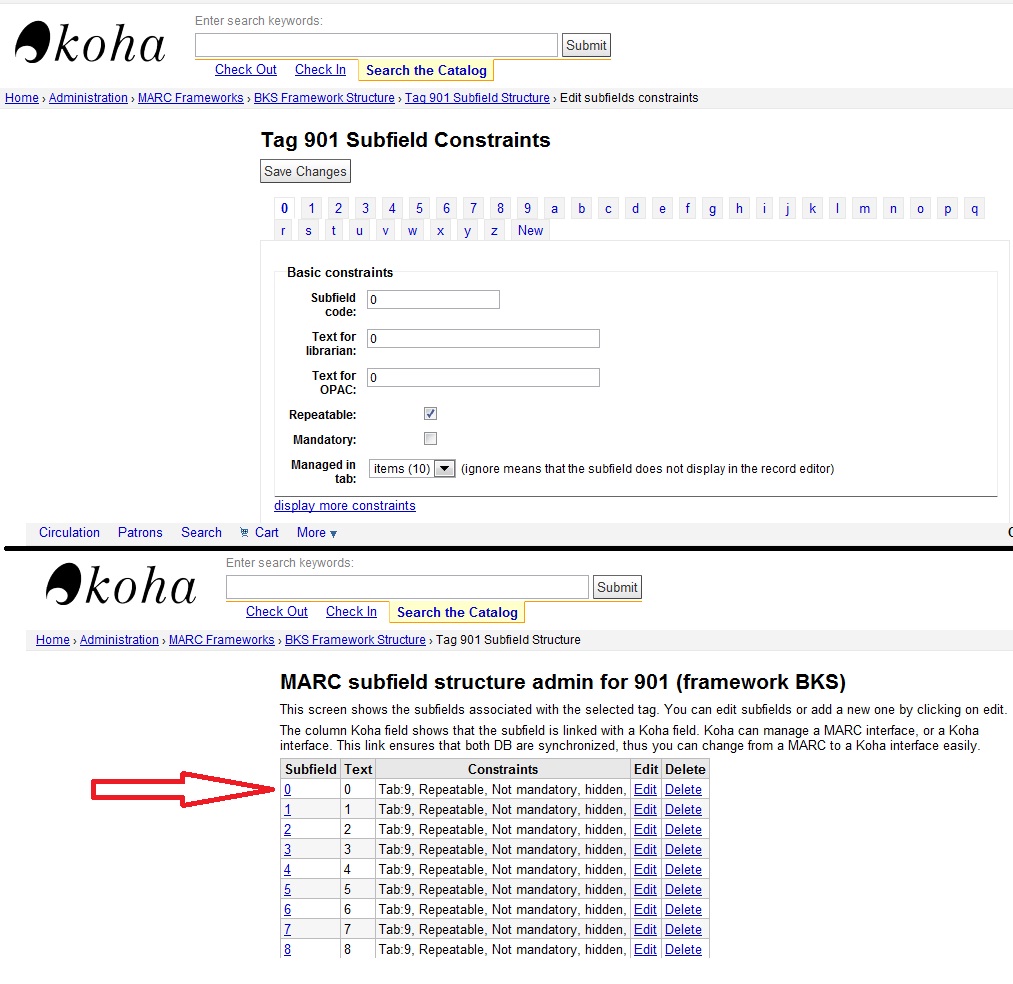 Created attachment 4396 [details] capture image When I try edit the Subfield Constraints in "MARC framework" I can edit all subfields but subfield "0" does not change.