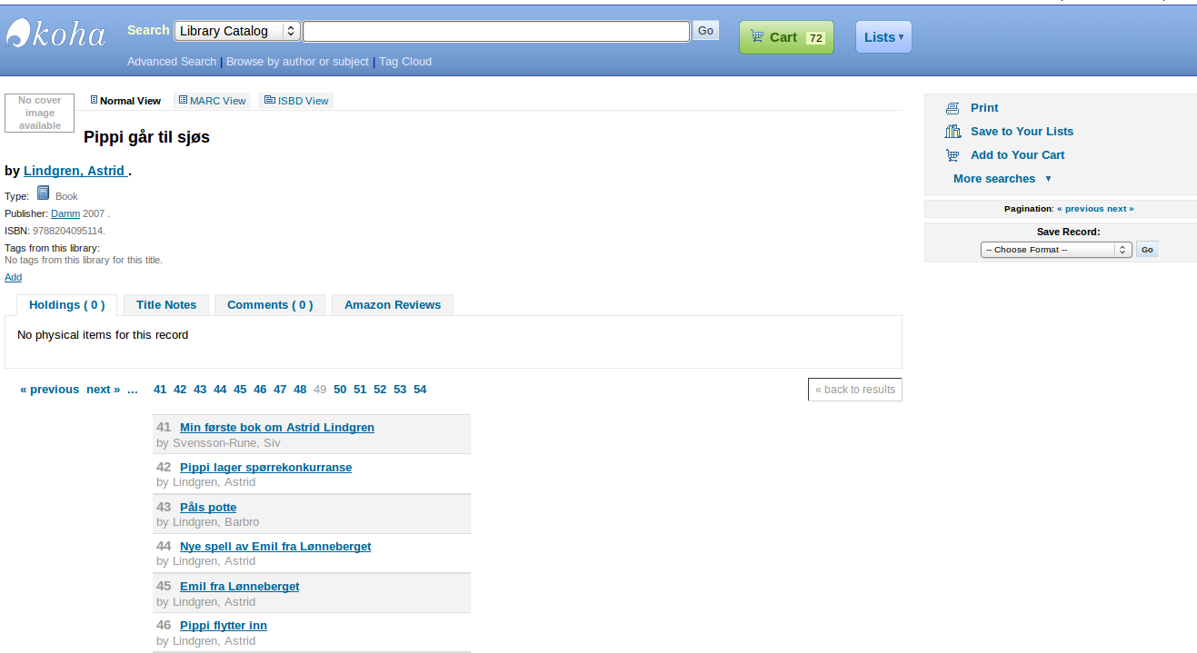 (In reply to comment #10) > I have tested the revised patch (attachment 4446 [details] [review]) and it works beautifully. I > do have some comments, though: > > - the size of the text in the box on the right (Pagination: « previous next » > ) should be a little larger, to match the text above and below it You're right the font size doesn't match, I'll change the css to fix it. > > - I would prefer if all the added functionality was in the box on the right, > and nothing was below the items - but that might just be me? I've added only the simple functionality in the right box, and the same with the paging list below the items to not overload the page at the top area. But it can be modified to render it as the community decides. > > This is kind of a big change to how the OPAC detail view looks, so it would be > good to have some more opinions! I'll attach a couple screen shots so others > can see without applying the patch. Ok, good idea.