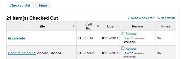 Can the renew selected or renew all buttons be at the top and the bottom in the patron account in the OPAC? Patrons w/ a lot of items out may not see the buttons at the bottom. Having them top and bottom maybe more user friendly? Maybe even only have them show if there are only a certain number of account lines - otherwise it might look sloppy if there are no fines, but two sets of buttons.