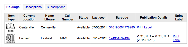 Created attachment 4618 [details] misaligned columns When viewing a bib record where the items were added from a subscription and the print label link is showing if one of the items is missing a subfield h in the 952 it lines up wrong. See attached.
