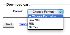 When you download a cart the options are not explained in human english they're in librarian english :) iso2709 should say Marc or some such RIS and BibTex should say what systems use those - EndNote, RefWorks? what do I need these formats for?