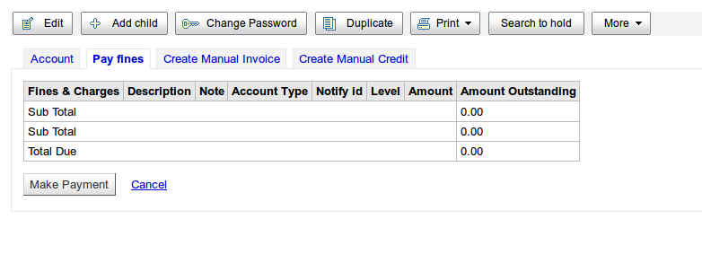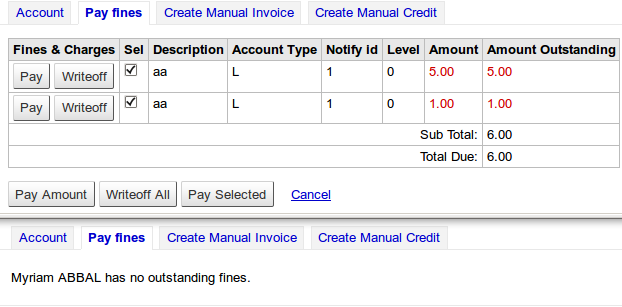 Created attachment 4990 [details] screenshot The line 'Sub total' is doubled up on the 'pay fines' page in borrower account. Both lines showed up when there was something to be paid and when there was nothing, like on the screenshot.