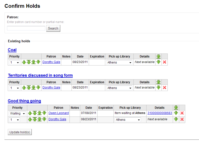 Created attachment 5103 [details] Each table of existing holds should show a title I've found two template variable scope errors in request.tt: One prevents the display of titles when the user is placing holds on multiple items. The other prevents the display of the patron information when there is a error placing a hold.