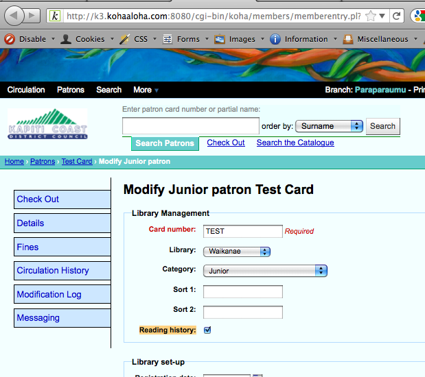 Created attachment 5531 [details] 'reading-history' setting is enabled by librarian, for specific user