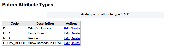 Note: For existing patron attributes, when a value is added in the patron edit screen, the value is added to the borrower_attributes table. However, it does not appear on the patron screen.