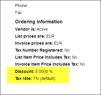 On the current master, I get: Discount: 0.0 % Tax rate: 5.0 %