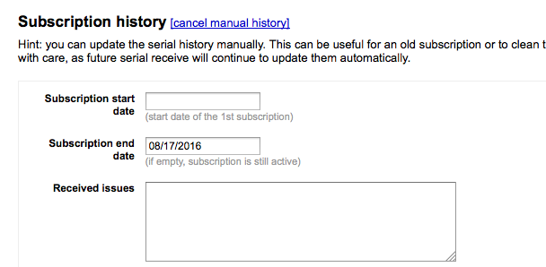 Colin, How do you remove it. On the left column there is an end date listed and I can't remove it. On the right column there is an end date and when I delete that it does save, but the other end date remains and I can't do any receiving on the subscription. I'll do a video for you if you need. Nicole