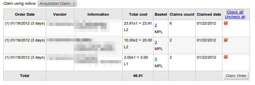 Created attachment 7277 [details] screenshot Links to "check all/uncheck all" orders from a vendor were implemented with bug 5347.
