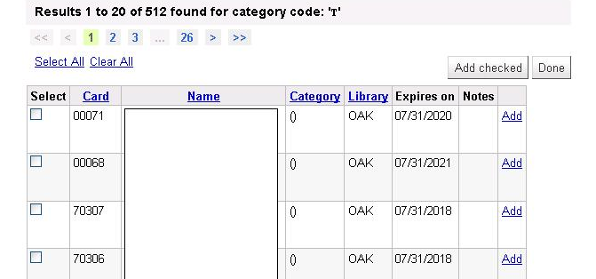 Created attachment 6570 [details] Sample Search Please see attached: Search by Category Codes shows all patrons in all categories. Displays "()" as category for all patrons.