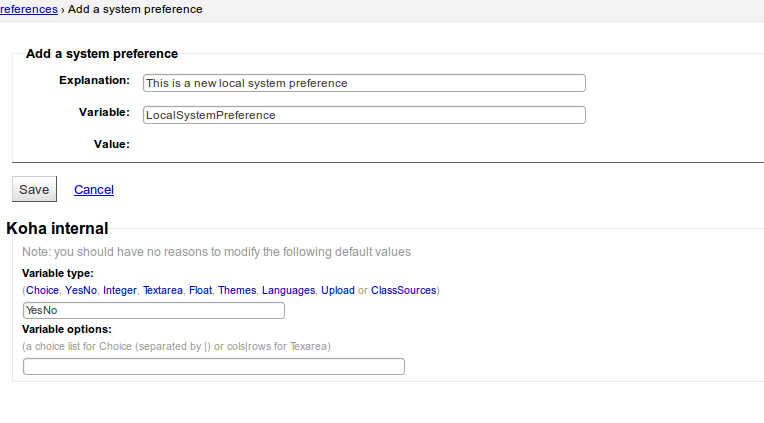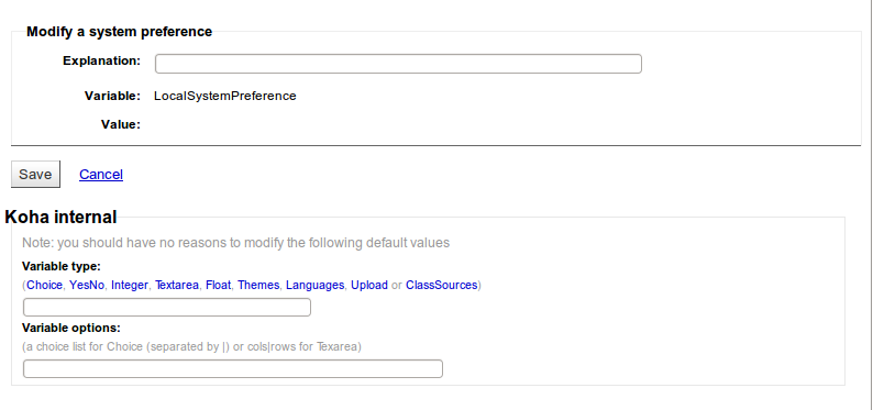Created attachment 6768 [details] Add local use system preference At the moment it's not possible to edit local use system preferences. I will attach a set of screenshots to show the problem. To reproduce: 1) Create a new local use system preference 2) Verify it shows up in the tab of local use preferences 3) Try to edit the system preference Problem: All fields are shown as empty. - explanation - variable type - variable options Saving the system preference like this will delete those fields from the database.