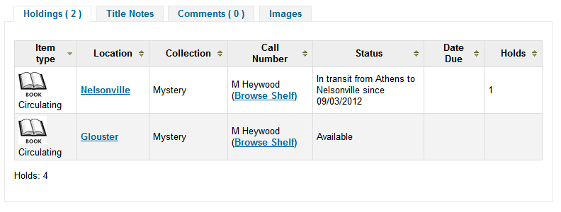 I wonder if the holds total should be shown at the top of the holdings list instead of the bottom? It would be hard to spot on a title with lots of items. I also wonder if the holds column in the holdings table should say "Holds on this item." That's a long label, but I'm concerned that it is confusing to patrons to see one number for total holds and another number in the table. For instance, 4 holds total, but only one line in the table says Holds: 1 because only one is an item-level hold?