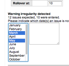 Created attachment 7080 [details] irregularity not in box on right In the Chrome browser when you pick the irregularity it doesn't put the months in the box on the right like it does in Firefox. See attached.