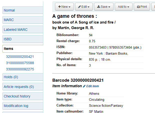 This enhancement to the staff interface bibliographic record items detail tab: