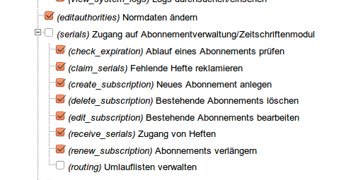 Created attachment 7553 [details] permissions Although there is a separate permission or receiving issues of serials, missing the general serials permission will not let you access the serials receive page. To test: 1) Modify permissions of a staff user, uncheck "routing" or any other permission, so the general serials permission is unchecked. Also remove superlibrarian permission. 2) Try to add a subscription and receive a serial for it. You should not be able to access .../cgi-bin/koha/serials/serials-edit.pl...
