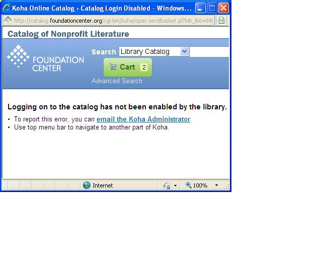 Created attachment 7974 [details] error message When a library doesn't allow logging in to the OPAC the error that pops up when trying to email the cart is a mess. The message links to what is supposed to be the admin email address, but the address is not there on the link. It also mentions a menu at the top that may or may not be there. This error should be cleaned up and the email link should actually email the administrator. I know that you have to log in to email the cart - this bug is not about that - it's just a design issue that needs resolving.
