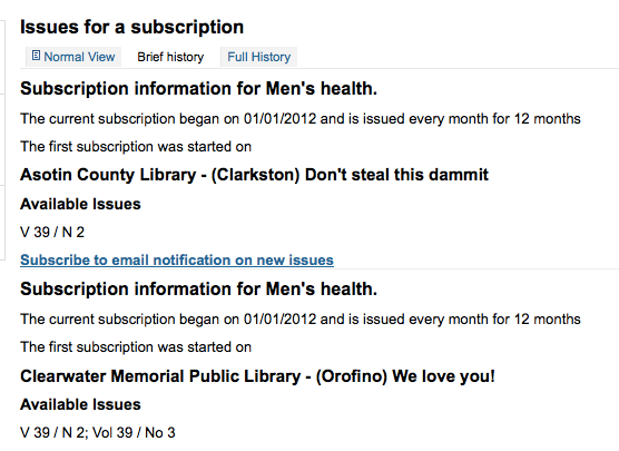 Created attachment 8044 [details] subscribe link in the OPAC When you're in the OPAC on the subscription details page there is an option to subscribe via email to updates to the serial. There is no notice template for this and it only seems to show for the first subscription, not any other. So either this needs to be removed, or we need to fix it to show for all subscriptions and have a notices template for it. See attached. And note that the link on the screenshot has the following info in the URL: cgi-bin/koha/opac-alert-subscribe.pl?externalid=2&alerttype=issue&biblionumber=91116