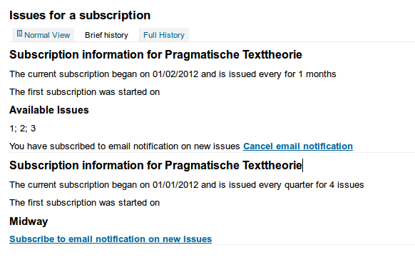 Ok, corrected my email settings and confirm now that serial alert mails work in current master :) Even diacritics are correct. So each time I receive a serial for the subscription the user is subscribed to, an email is sent out informing that a new issue has arrived. Nicole, can this bug be closed? Do you need any more information to document this feature?