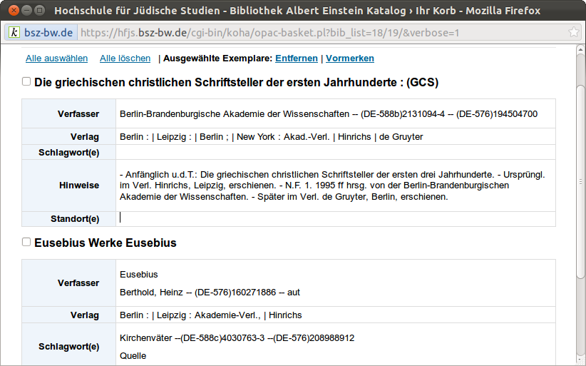 Created attachment 8154 [details] screenshot The "More Details" view of the cart in OPAC shows too many subfields. Especially identity numbers from $0 subfields are not interesting for the user.