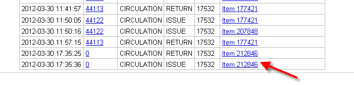 Created attachment 8755 [details] [review] Correct bad link to item in patron modification log In patron modification log, the ITEM and RETURN transaction links aimed at the wrong record.