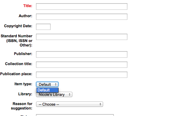 Created attachment 9381 [details] default item type I have confirmed this on 3 different 3.8 installs. When making a purchase suggestion in the OPAC the item type pull down always says 'default' - it used to have the item types in it.
