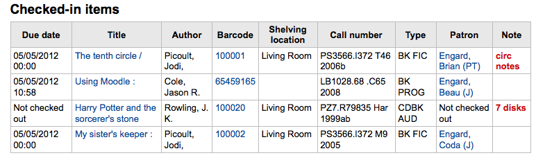 Created attachment 9420 [details] all items say they're due today When checking in a bunch of items it shows the due date as the checkin date instead of the actual due date. See this image in the manual to see what it used to show. And attached to see what it shows now.