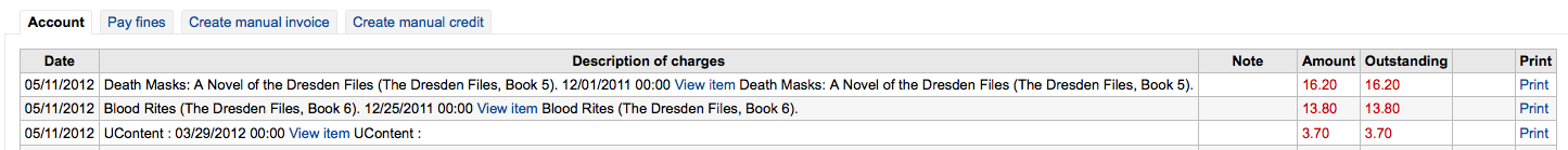 Created attachment 9524 [details] staff shows fines In the OPAC under the fines column on the 'checked out' tab it always says 'No' See attached. In the staff client there are fines on the items, but in the OPAC it says 'No'.
