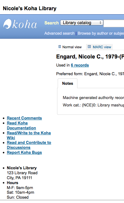 The authority viewer in the OPAC provides only an expanded MARC view of authority records, which is barely even of use to librarians, much less patrons. There should be an authority view more like the biblio details view, which provides friendly access to the information in authority records.