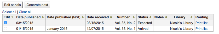 I've applied the patches, ran the database update and then tried to run the unit tests specific for serials, sadly, they are failing with these patches, but are ok on master: Test Summary Report ------------------- t/db_dependent/Serials.t (Wstat: 1024 Tests: 44 Failed: 4) Failed tests: 39-40, 42-43 Non-zero exit status: 4 The QA script was ok, no problems there.