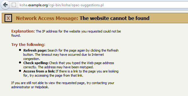 Created attachment 10637 [details] Error on "Purchase Suggestion" link click Purchase suggestion link in OPAC directs to the following http://koha.example.org/cgi-bin/koha/opac-suggestions.pl which doesn't open. Attached screen shot for this error. Should "koha.example.org" in the above URL changed to my server IP because when i did that it opened for my the page for creating new purchase suggestion [My Purchase Suggestions ] If it should be changed how i could do it ?