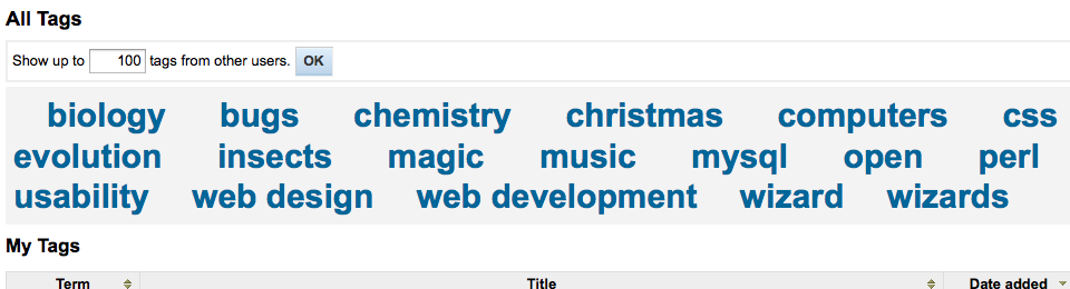 Created attachment 10834 [details] tag cloud See attached, all tags are the same size regardless of the number of times the word is used. It used to be different sizes based on the number of times.