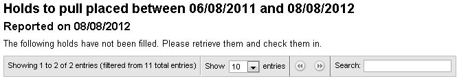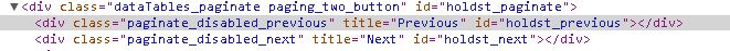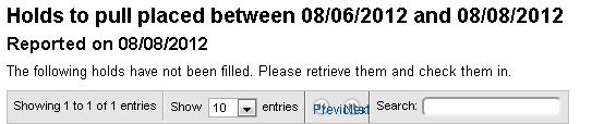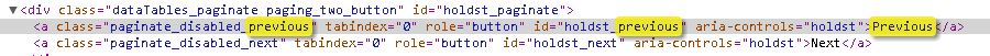 On pendingreserves.tt (or the Holds to Pull screen), the Previous and Next buttons now have "Previous" and "Next" link text appearing overtop of them. In 3.8.0, there are just the buttons and no text overtop. If you look at the element that has the button images, it is a div element with titles for "Previous" and "Next". In 3.9.0.30, the div elements no longer have titles, but instead of links within them that have link text of "Previous" and "Next" that appear overtop of the button images. jquery.dataTables.min.js 1.8.1 - Shows "Previous" and "Next" as titles for the div showing the image jquery.dataTables.min.js 1.9.1 - Removes the title from the div and adds links which have "Previous" and "Next" as link text. -- I haven't tested this extensively, but I do wonder why there are links in 3.9.x and not 3.8.x. Since there aren't enough holds to generate another page of results, the earlier behaviour might be the correct one. Or maybe the links weren't showing up and the button images were worthless in 1.8.1. I don't know. I just know that it looks terrible.