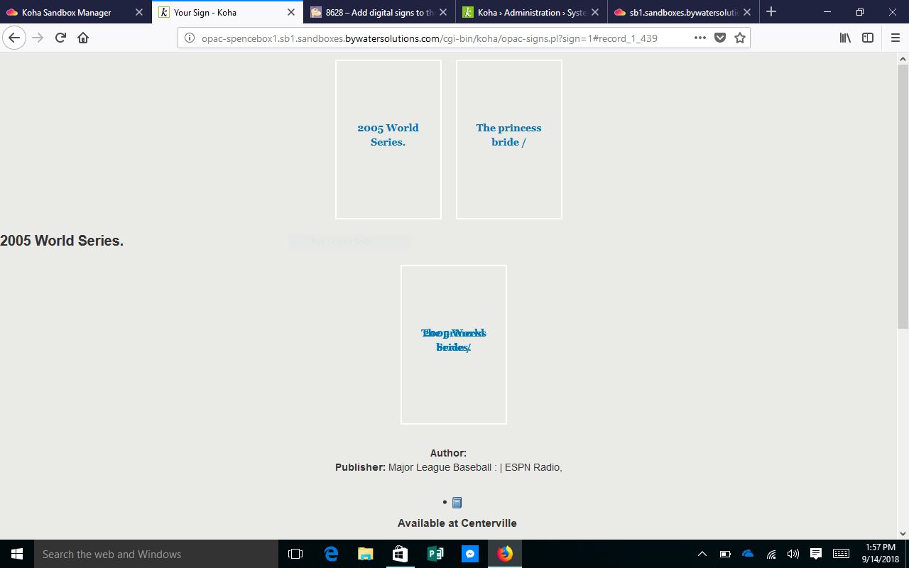 Bug 8628: Digital signs - opac interface