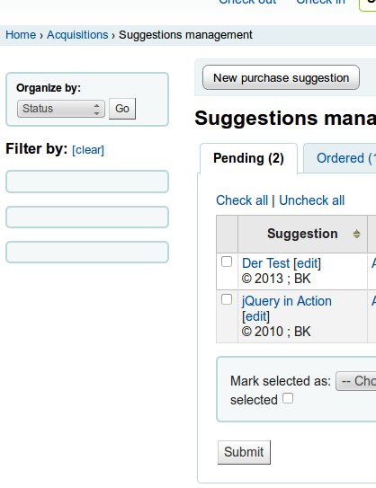 Created attachment 15463 [details] screenshot The filters on the suggestion page in staff are only showing blue boxes without any content (see screenshot).