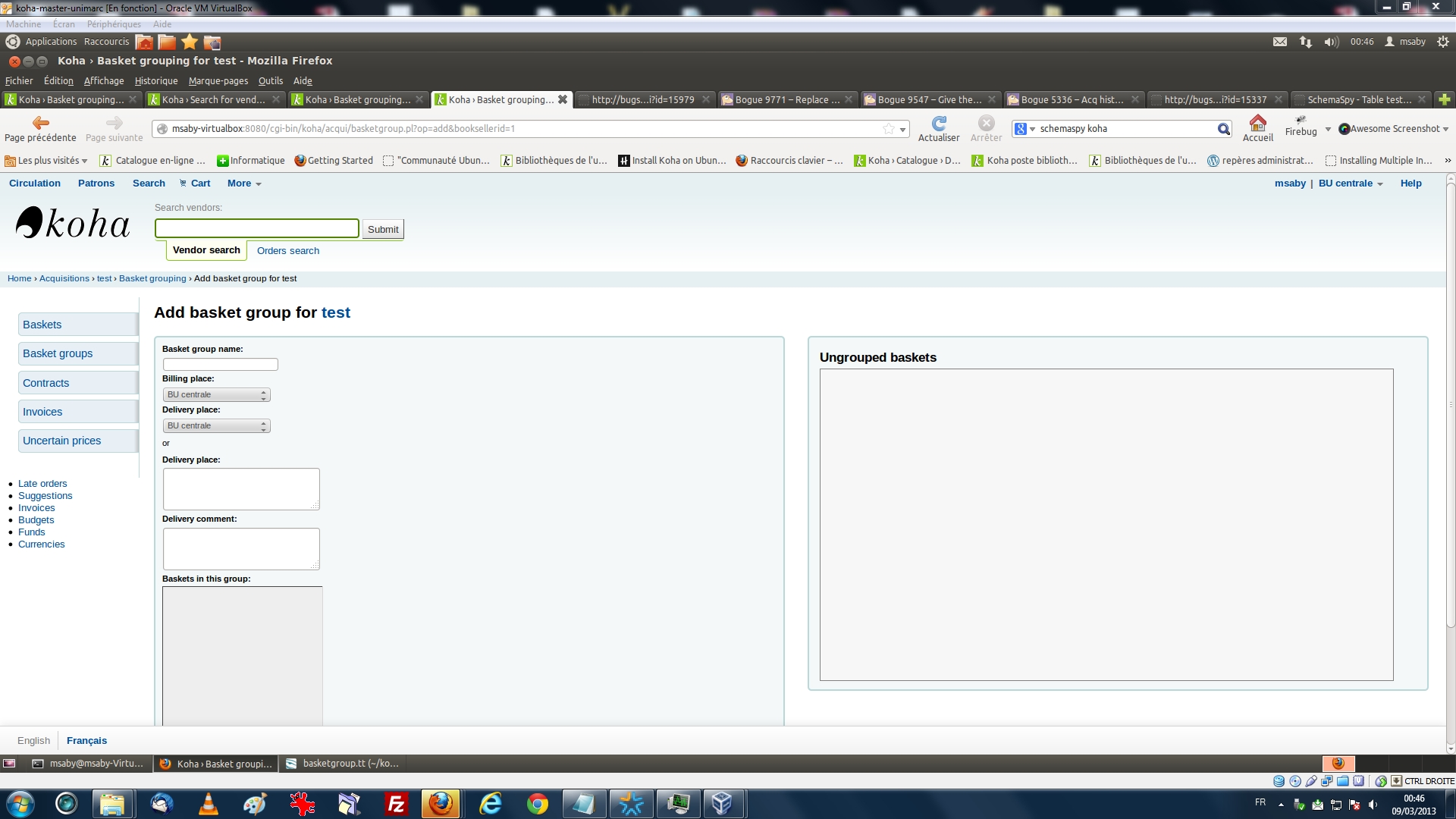Created attachment 16595 [details] [review] [PASSED QA] Bug 9771 [Revised] Replace YUI buttons on acquisitions basket groups page with Bootstrap The acquisitions basket group page has a toolbar with YUI-generated buttons and menus. It should use Bootstrap instead. This patch removes the YUI menu buttons altogether, replacing that functionality with the sidebar menu now included on other acquisitions pages (See Bug 8913). The "New basket group" button is now styled by Bootstrap. Other minor changes: Corrections of invalid markup, improvement to breadcrumbs. To test, view the basket group page and confirm that the toolbar button looks correct and works correctly. Confirm that navigation works and that functionality of the basket group edit page is not affected. Revision adds an explicit width to the basket-grouping form columns so that they don't stretch too wide (and far from each other) when the browser window is very wide. This better replicates the layout of the previous version. Signed-off-by: Mathieu Saby <mathieu.saby@univ-rennes2.fr> Signed-off-by: Katrin Fischer <Katrin.Fischer.83@web.de> All tests and QA script happy.