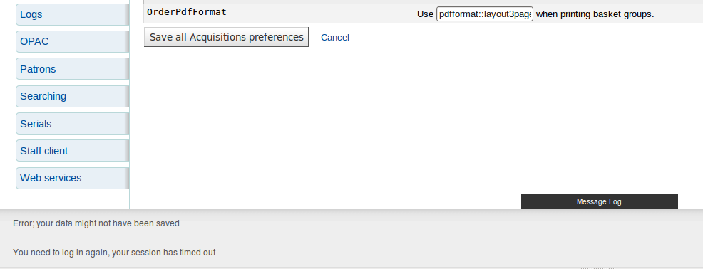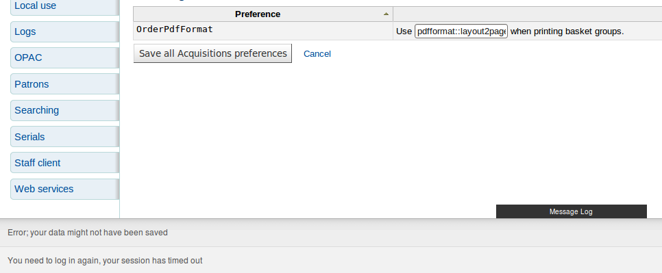 Created attachment 16055 [details] [review] Bug 9797 - Untranslatable strings have returned to ajax.js The patch for Bug 8942 undid the changes to ajax.js made by Bug 9331. This patch puts those changes back. To test that preference-related error messages continue to work, open the system preferences editor in two tabs. Log out in one tab and try to save a system preference in the other. You should see correct error messages.